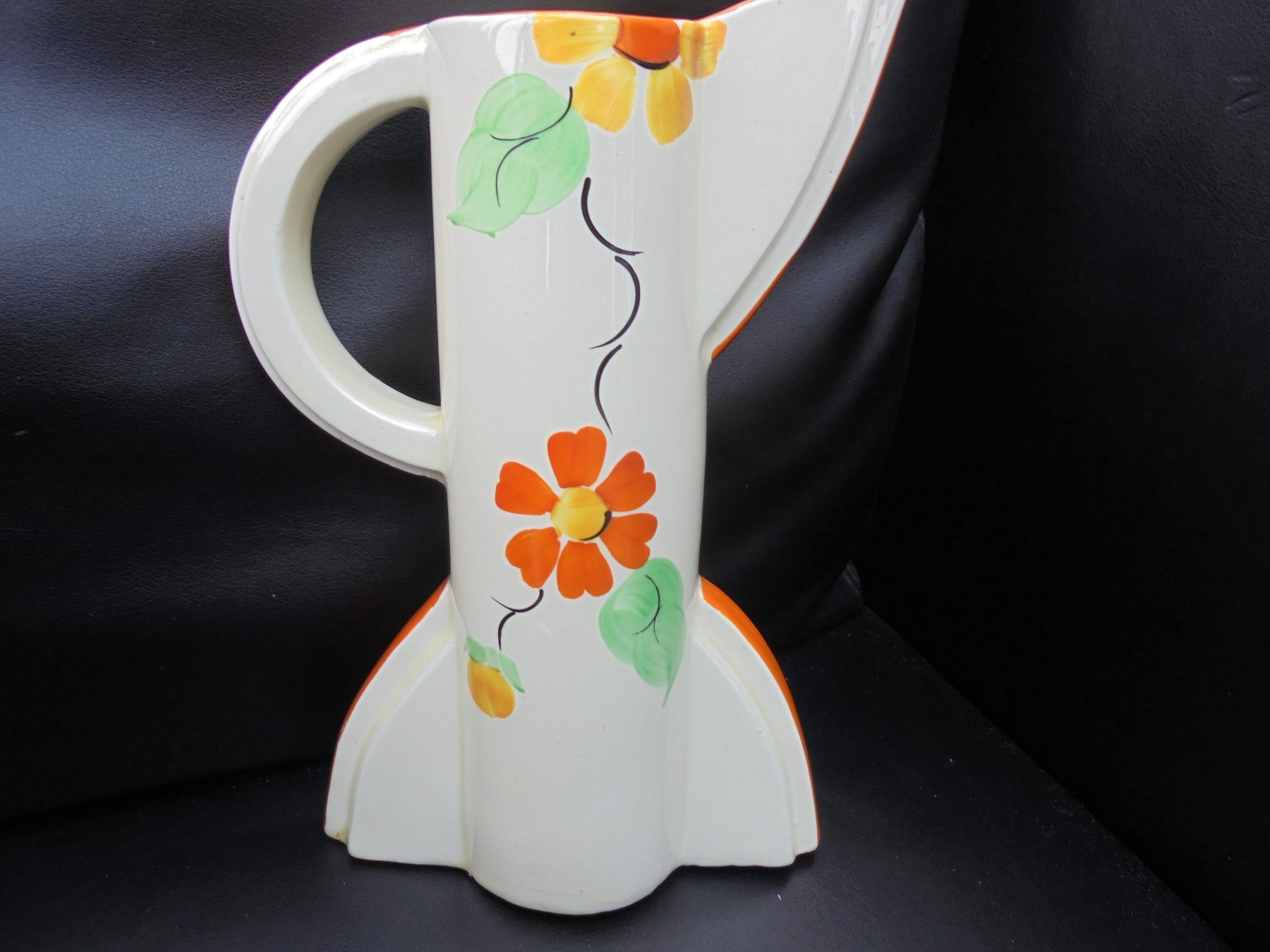 This is an amazing Art Deco shape jug in really good condition with NO damage, chips or cracks. Unfortunately there is no makers mark to the base but it would be a great addition to any Art Deco collection. The jug is 10 inches high.