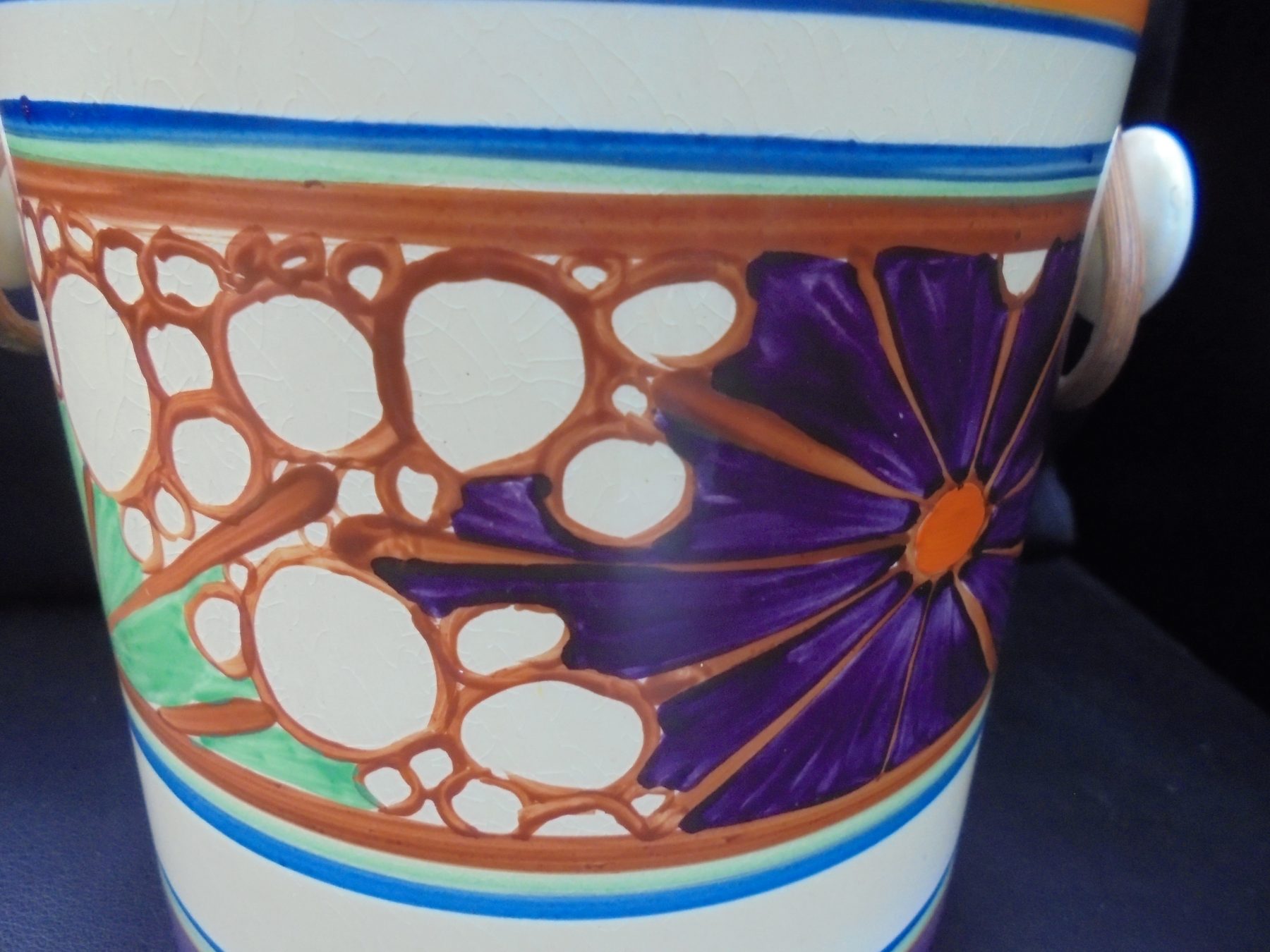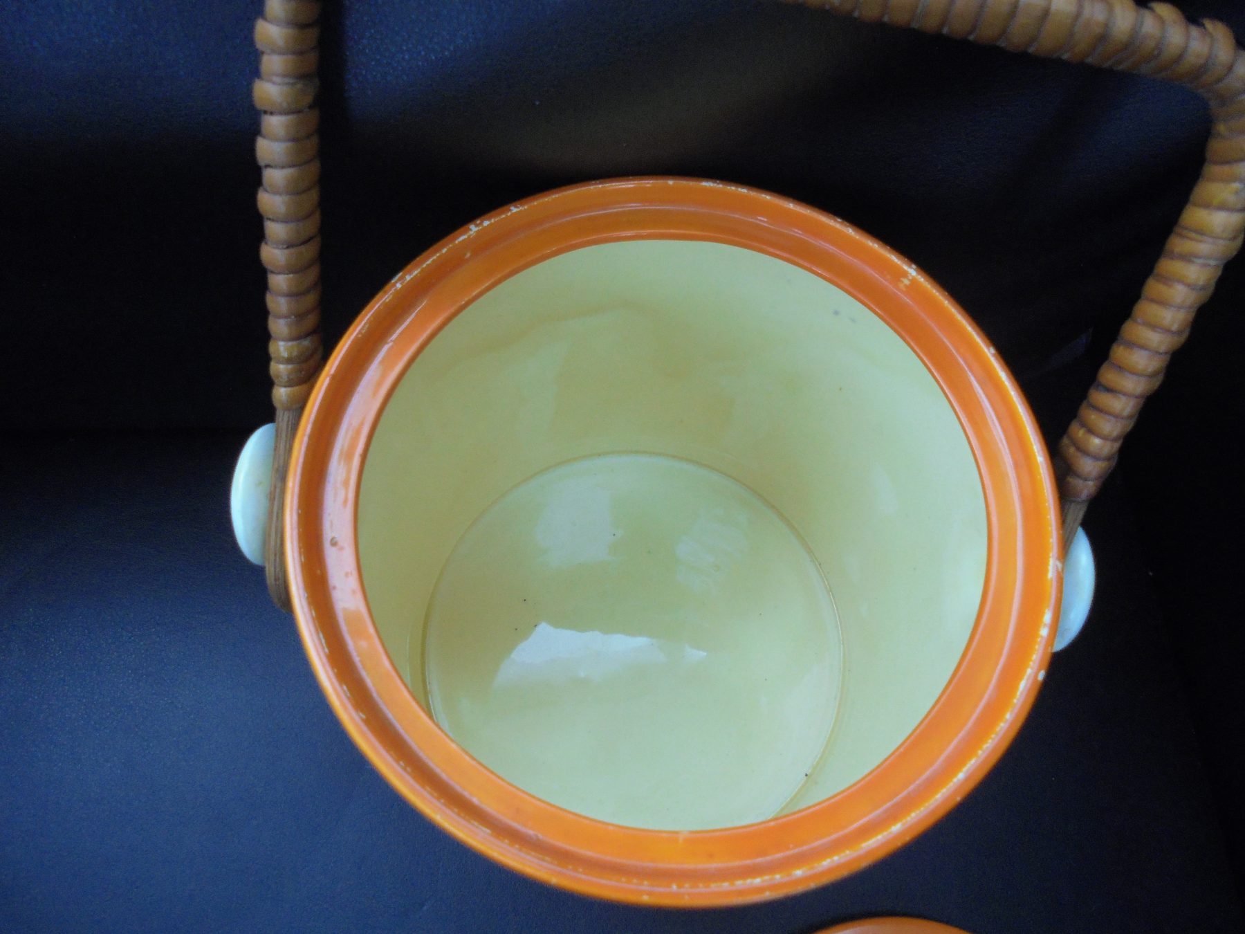 A stunning biscuit barrel with hand painted BROTH pattern. The BROTH pattern was produced between 1929 and 1931. It is in very good condition with NO damage, chips or cracks.