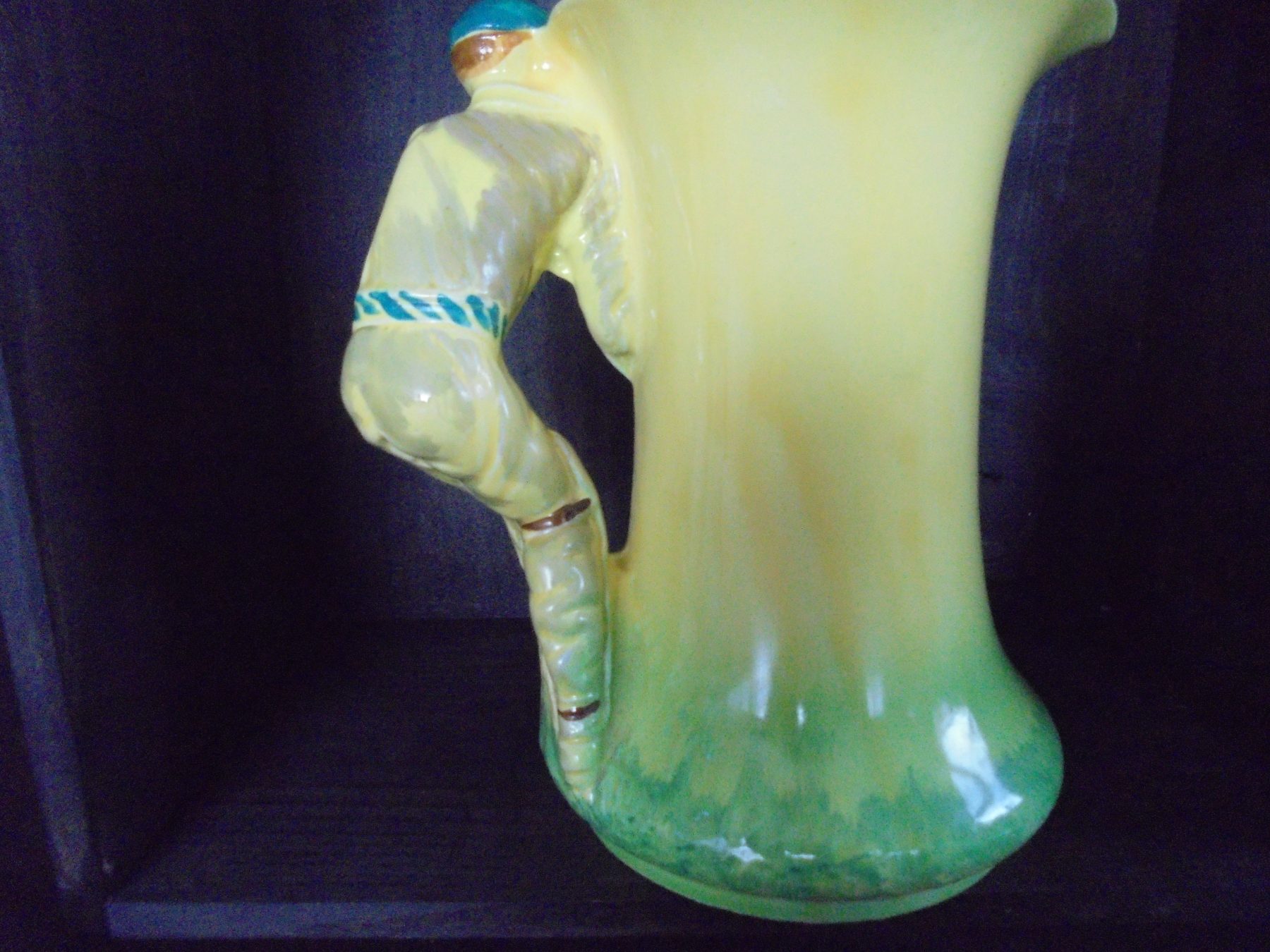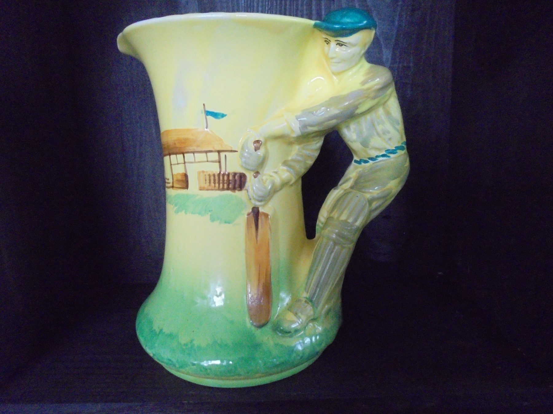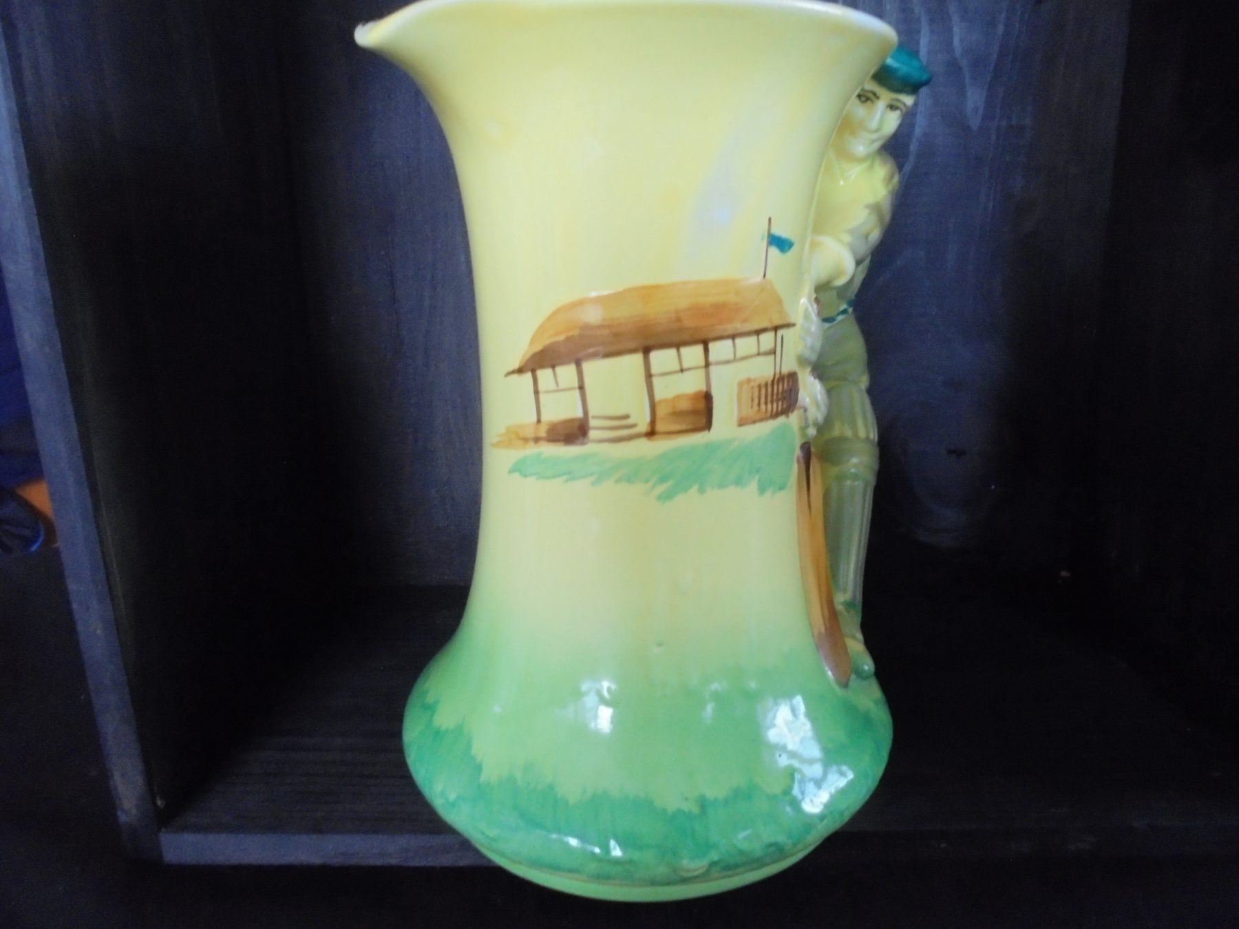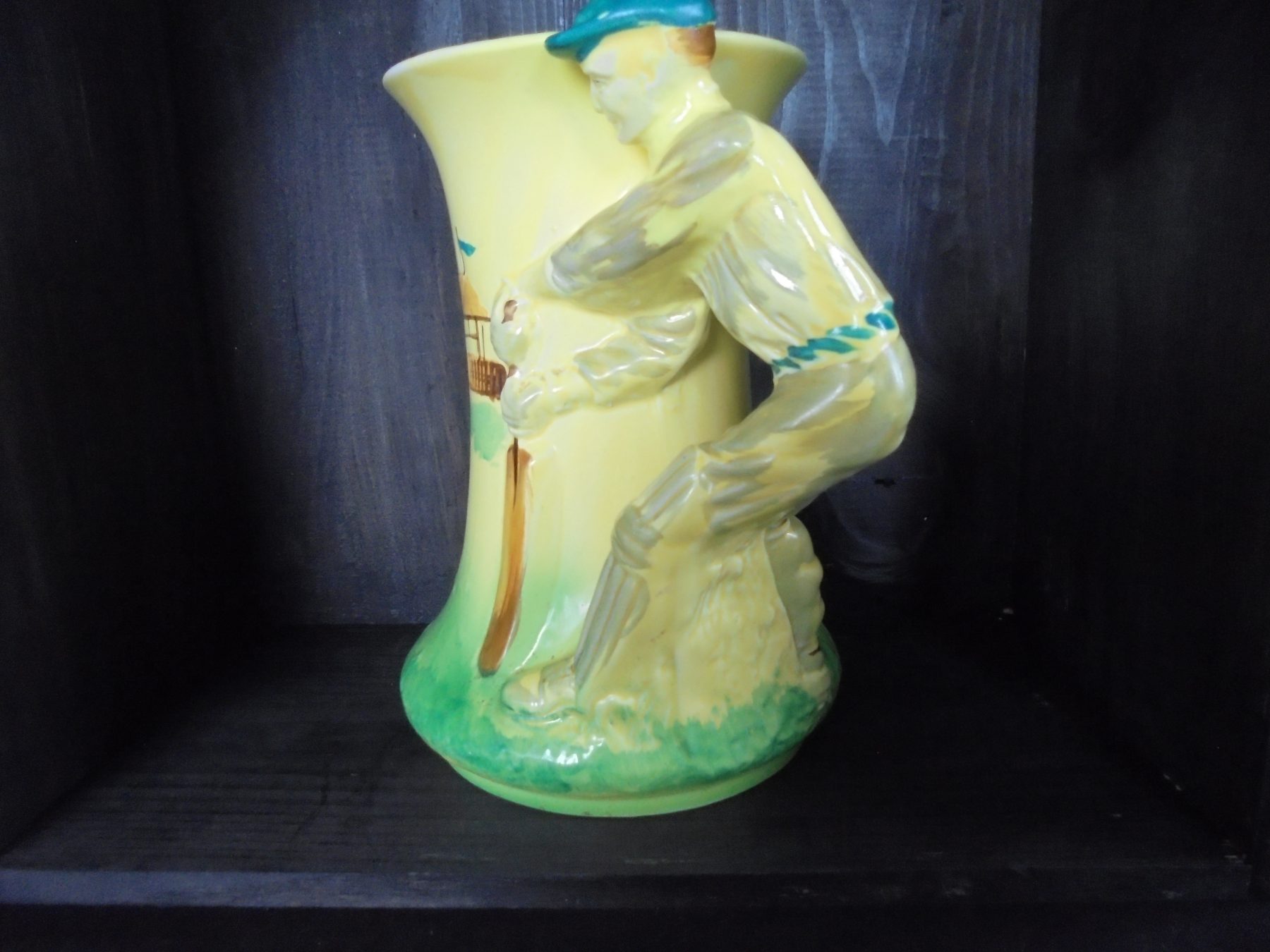 An extremely rare CRICKETER jug made by Burgess & Leigh commonly known as Burleigh Ware. Please note that this is not a modern reproduction. The jug measures 7.5 inches high and is in good condition with no damage, chips, cracks or restoration.